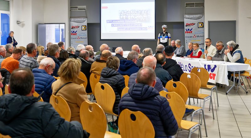 Hier se tenait l’Assemblée Générale du club, Salle Saint Henri au Creusot. La séance a débuté avec un moment de silence pour notre ami José Prior décédé ce vendredi, et des pensées pour Christian Dérangère et Marcel Jankoswki, des proches de Creusot Vélo Sport, qui nous ont quittés cette année. Notre ami Roland Douarre était là pour immortaliser le moment.