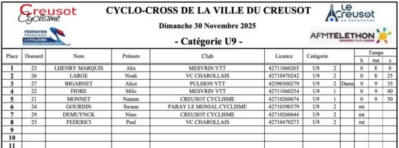 Dimanche 30 novembre 2025, le cyclo-cross du Creusot, organisationj Creusot Cyclisme sur le parcours habituel, a souffert d’une météo défavorable .