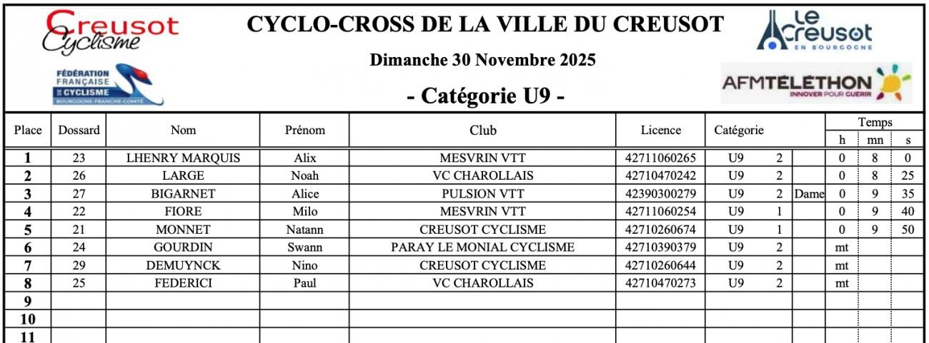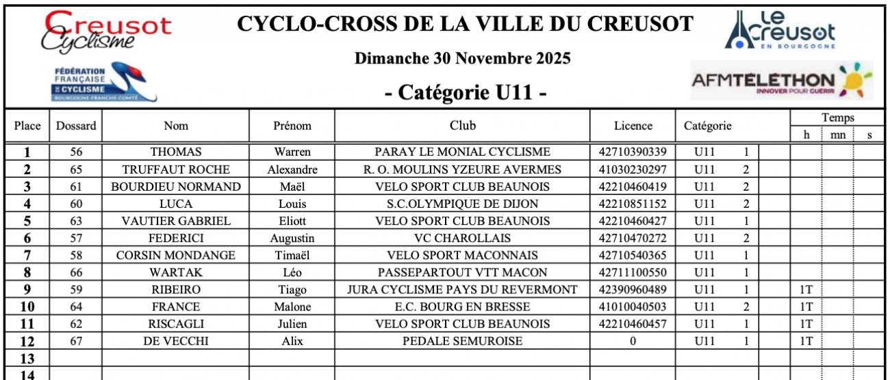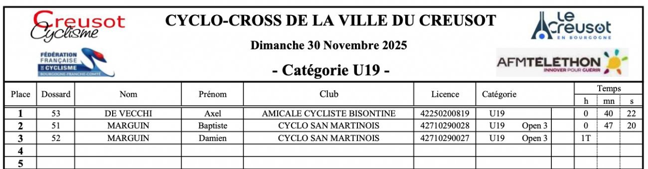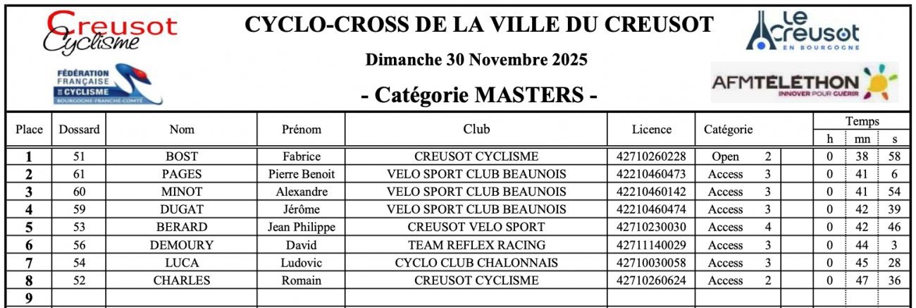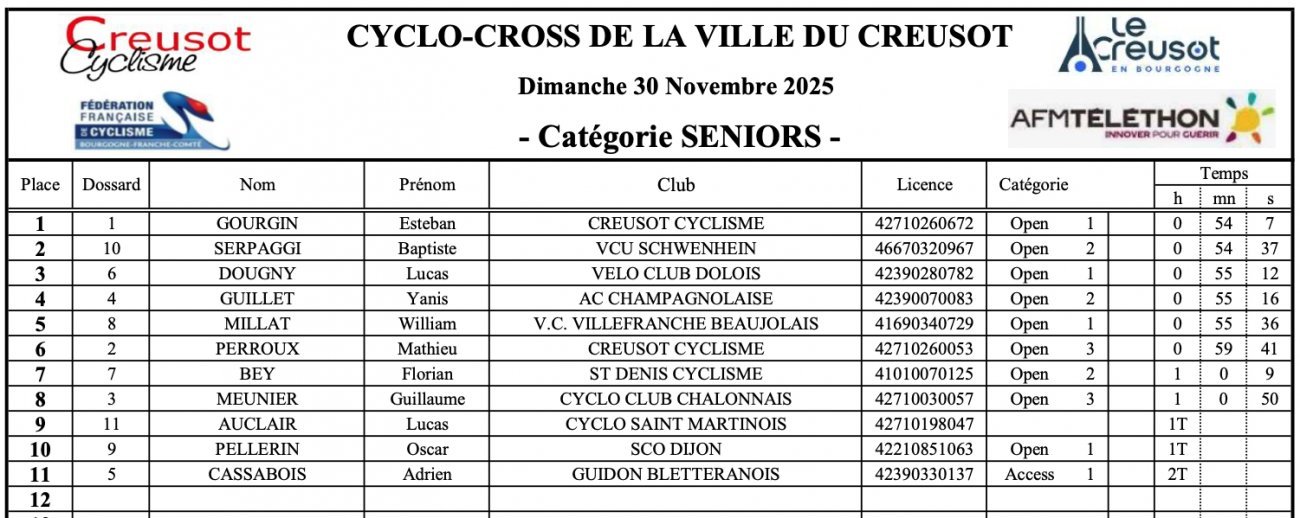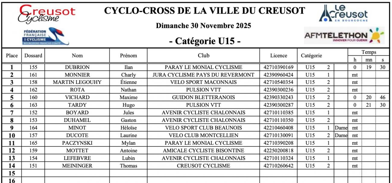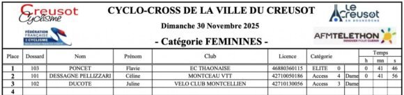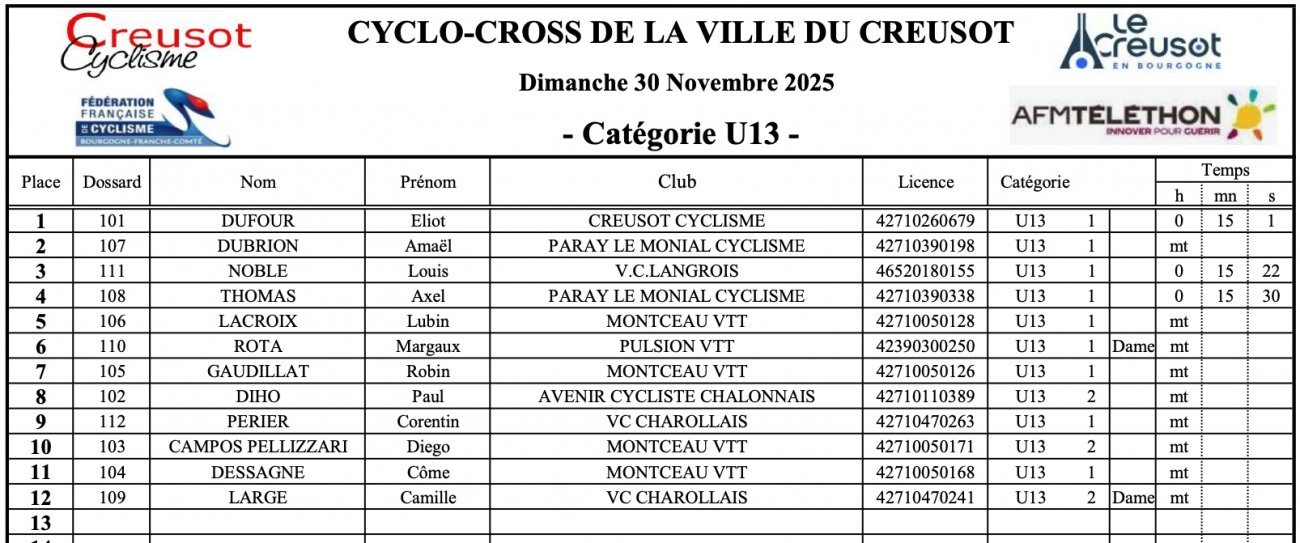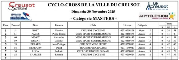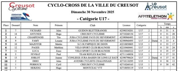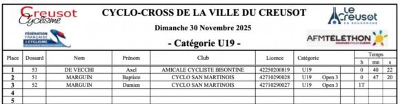 Dimanche 30 novembre 2025, le cyclo-cross du Creusot, organisationj Creusot Cyclisme sur le parcours habituel, a souffert d’une météo défavorable .