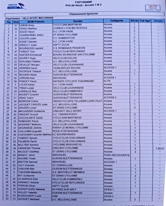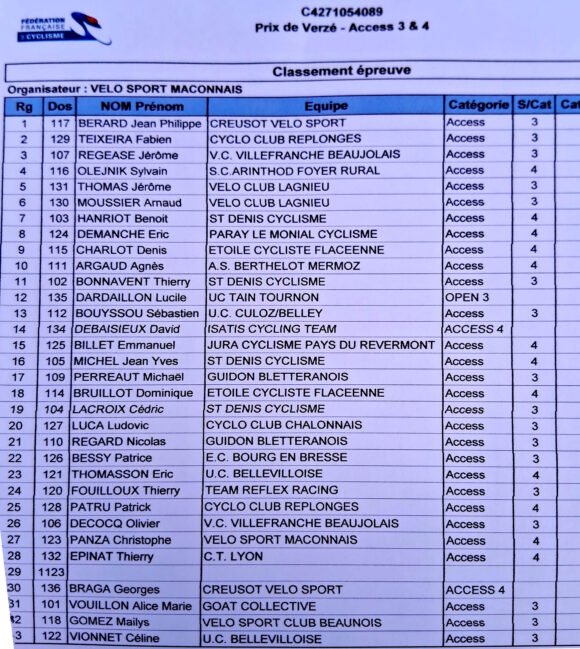 Dimanche 22 mars, 3 adhérents Creusot Vélo Sport ont participé au prix de Verzé, organisation FFC du Vélo Sport Mâconnais.