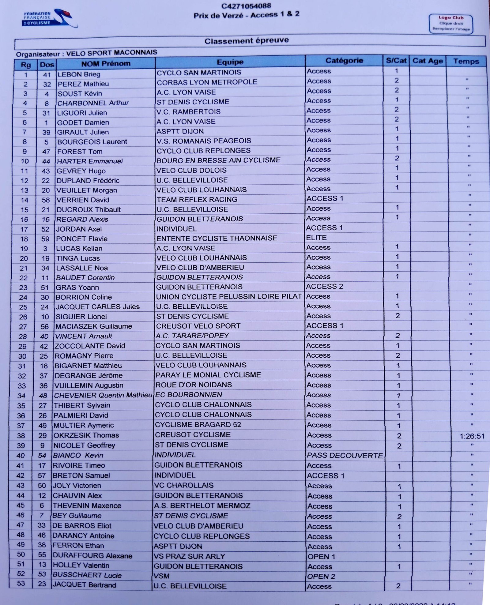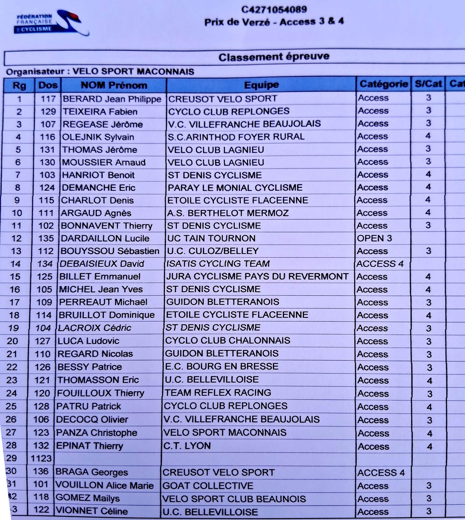 Dans la course Access 1+2 Guillaume Maciaszek est 27ème.